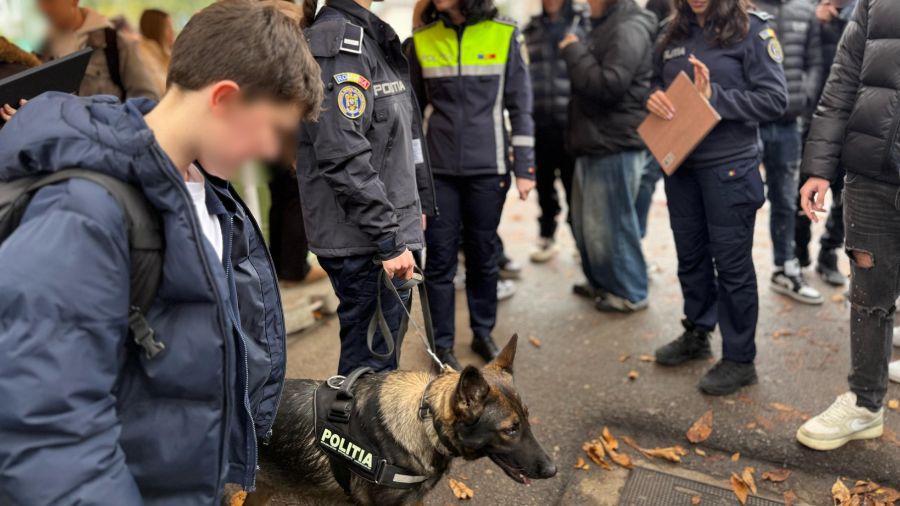 Iris, câinele polițist, a demonstrat abilitățile sale, captând atenția tinerilor și consolidând relația elevilor cu autoritățile. Reprezentanți ai Biroului Siguranță Școlară și ai Compartimentului de Analiză și Prevenire a Criminalității au condus discuțiile interactive, promovând un comportament civilizat și responsabil.